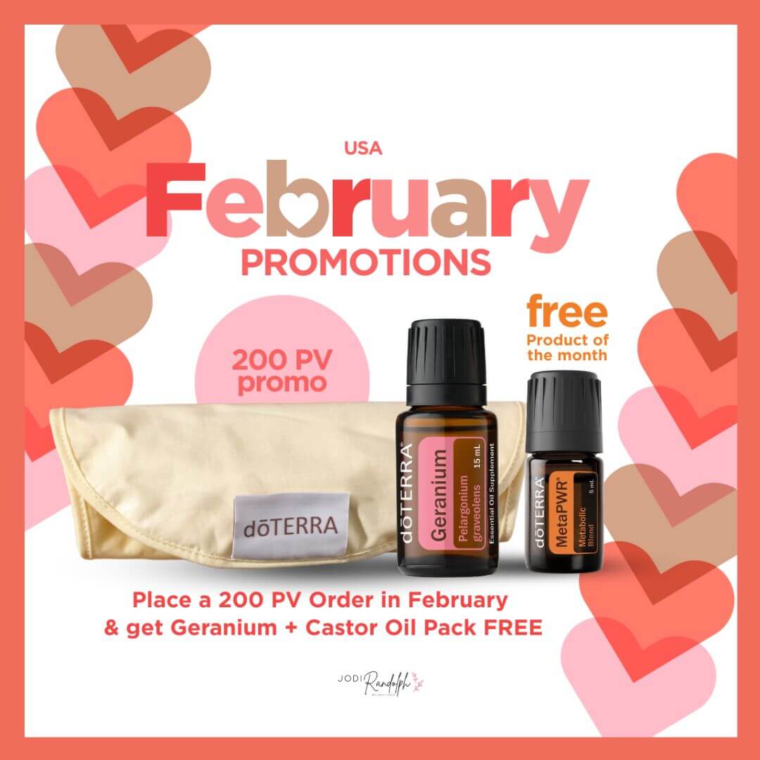 • 200 PV promo all month long: receive Geranium 15 ml + Castor Oil Wrap